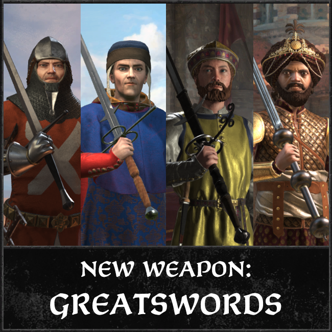 Update 2025-10-30: – CK3 1.18 compatible. – Add Odachi as graphic variant for Japanese greatsword – Add vanilla Japanese sword animations for greatsword Description A mod that add a brand new artifact weapon type greatsword, with custom 2d icons, 3d models