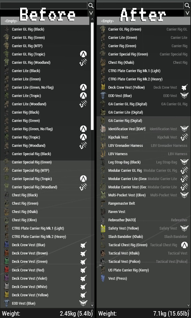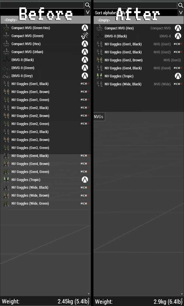 What’s This? A patch for ACE3 Arsenal Extended (ACEAX) to cover vanilla ARMA 3 and it’s “default” DLCs as well as default ACE items. ACE 3 Arsenal Extended groups together similar items into a single entry and lets you choose between different cosmetic-onl