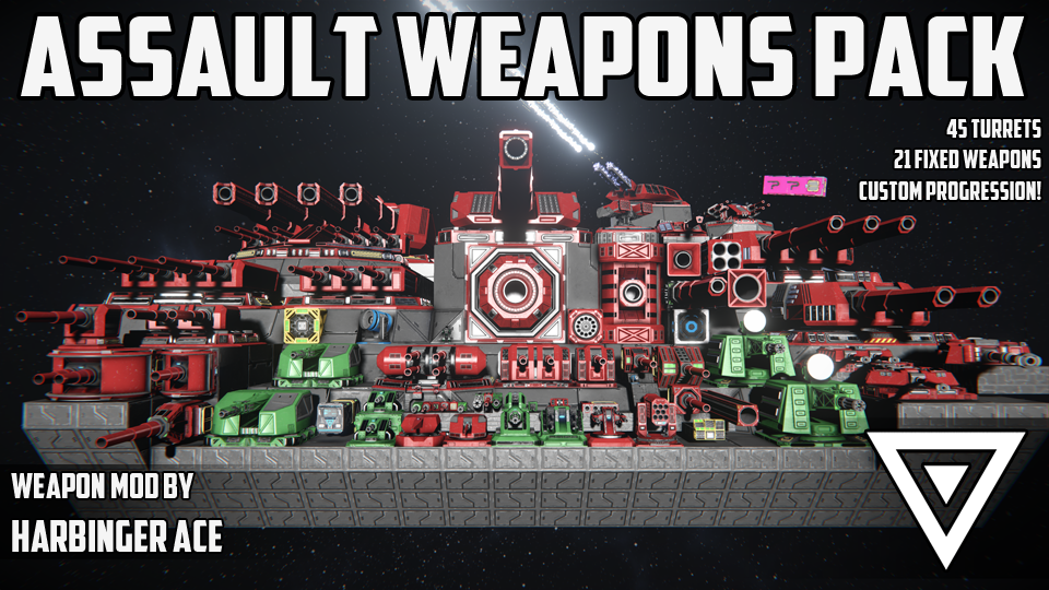 Introducing Assault Weapons Pack! Featuring almost four dozen armored turrets and almost two dozen fixed cannons, Assault Weapons Pack provides engineers with a deadly arsenal to unleash upon the battlefield. Field multiple rotary autocannons to face down