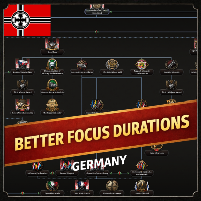 Tired of waiting for focuses that take too long? Then this is the mod for you. This mod shortens the durations of German national focuses, making it possible to complete the entire focus tree in a single average playthrough. All German focuses (including a