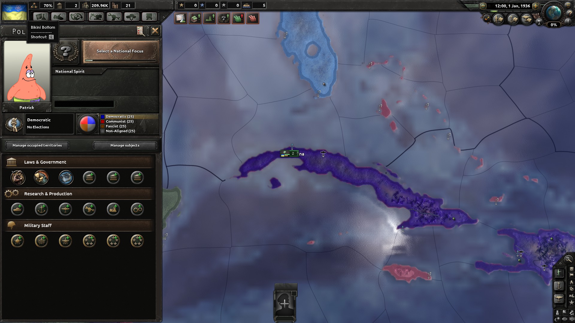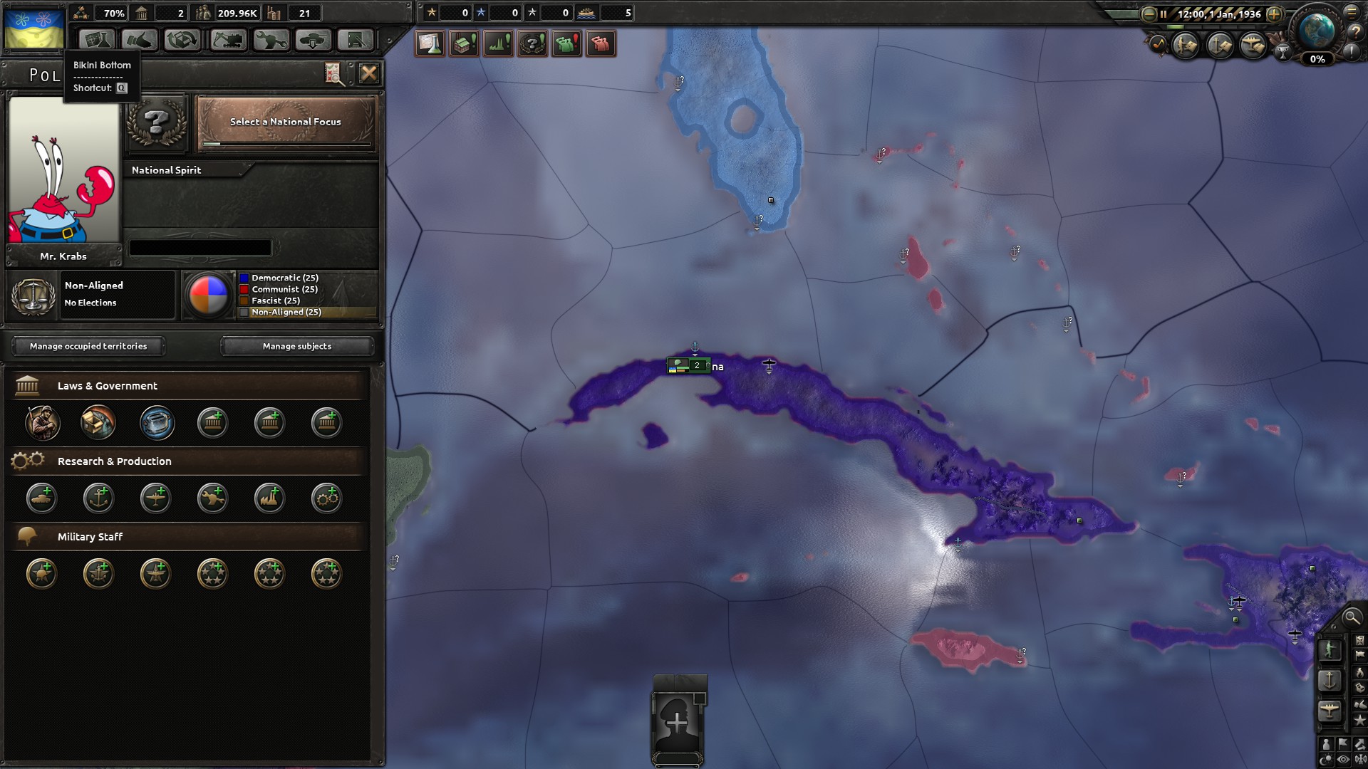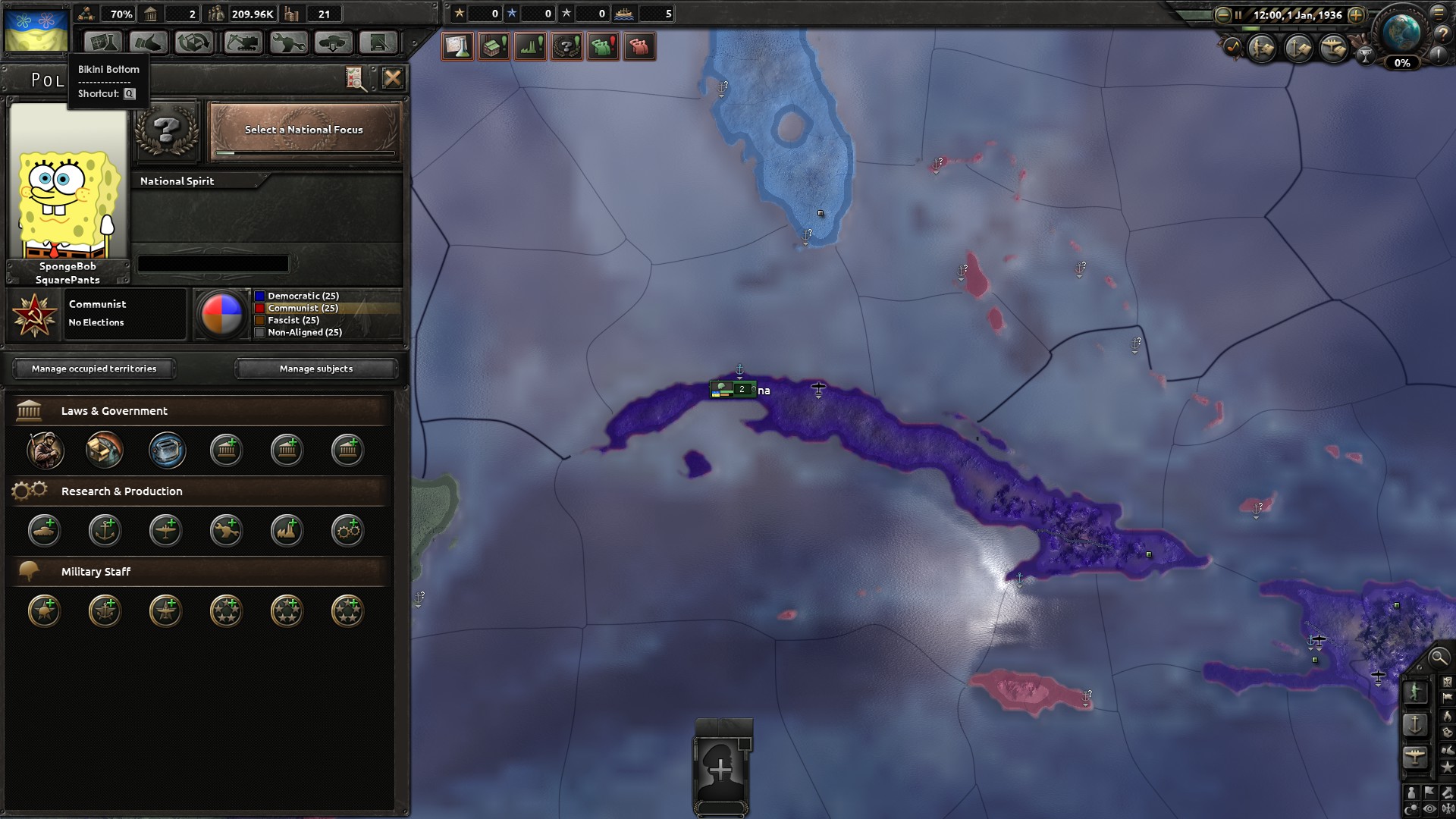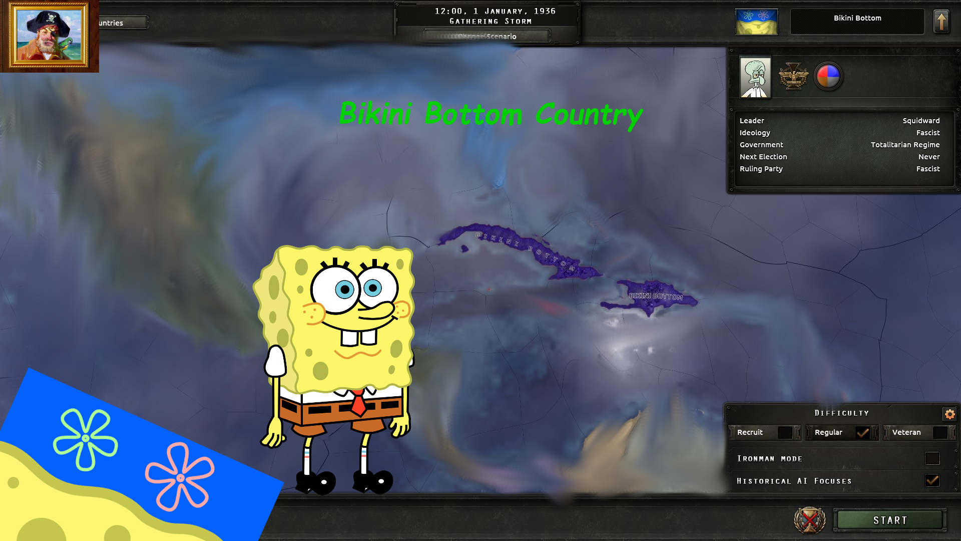 A work in progress. I have created a new country inspired by SpongeBob. I have also created new leaders, loadingscreens, music and a bit more. Please come with ideas of how you want the mod to be! Please rate and favorite. It keeps my spirit up!