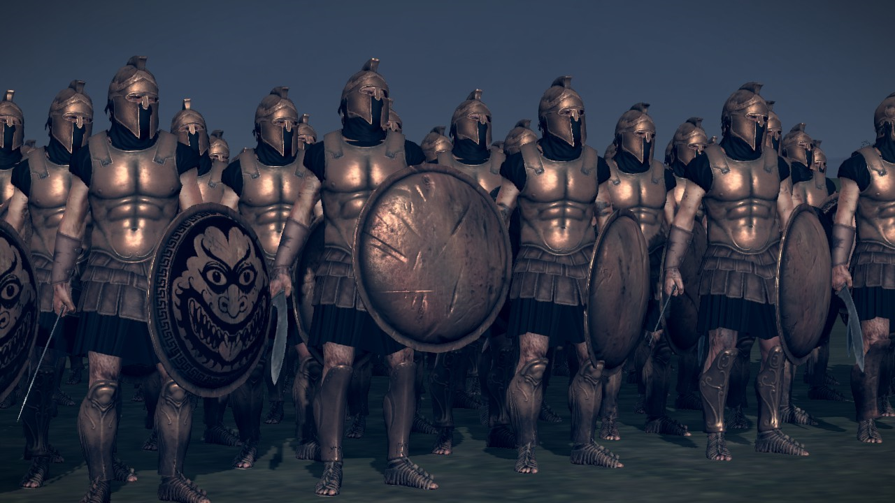Hello! and behold my newest unit, –By request– The Harbingers of ares.. — Their image sends chills down the spine of all men. They are Spartans. And they know no fear. They are in custom battle and campaign, recruitable from royal barracks. And temple o