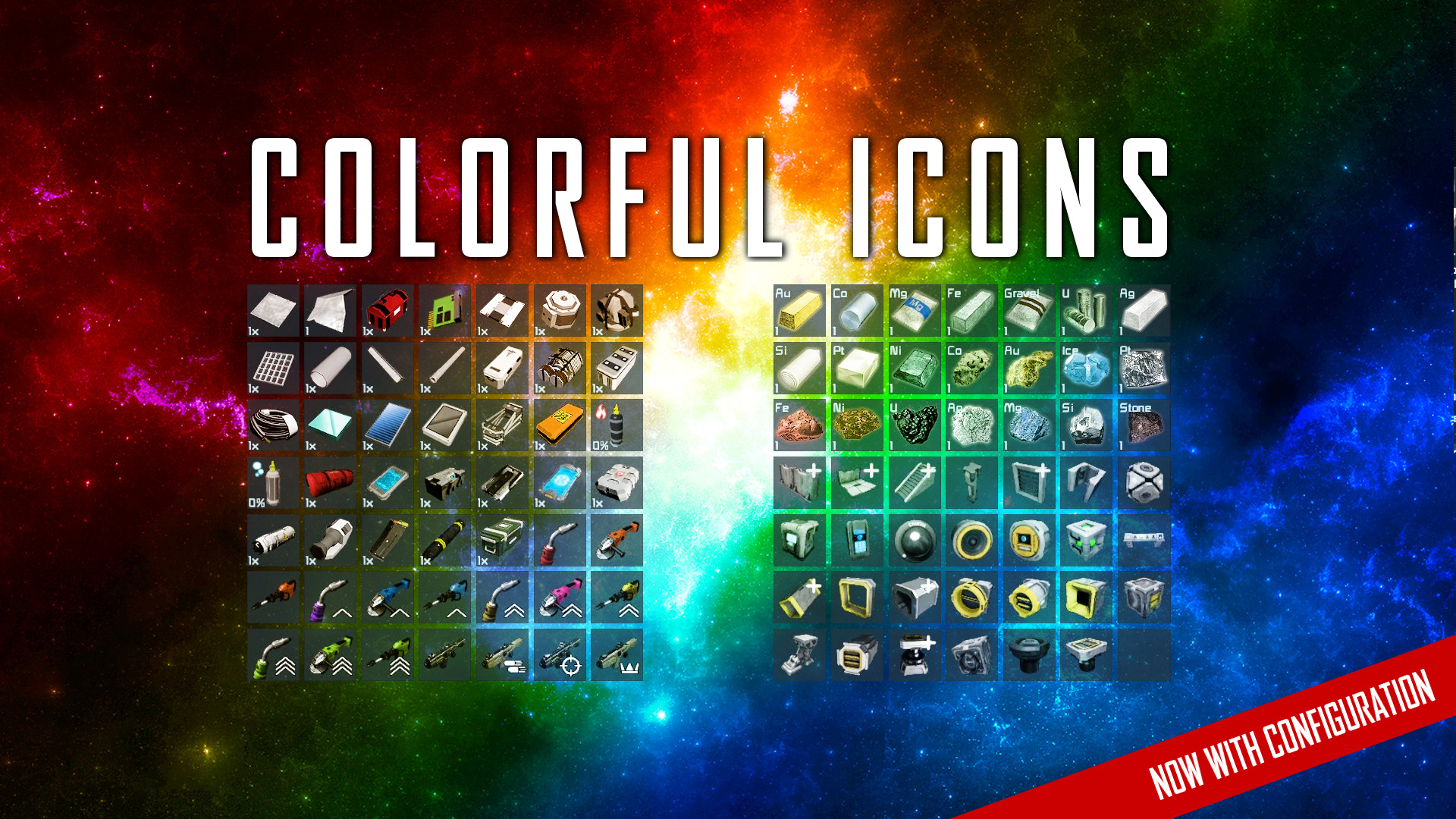 Are you tired of the bluish color of all the icons? If so, I have a solution for you! COLORFUL ICONS MOD! Installation Just subscribe and add it to your world or server’s mods list. Use on any server If you want to use this mod on any server, even if the s