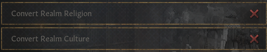 Convert your sub realm to your culture and religion. Useful when you have a large empire and populist faction keeps popping everywhere. You will need piety and prestige to convery religion and culture respectively based on how many counties to convery. You