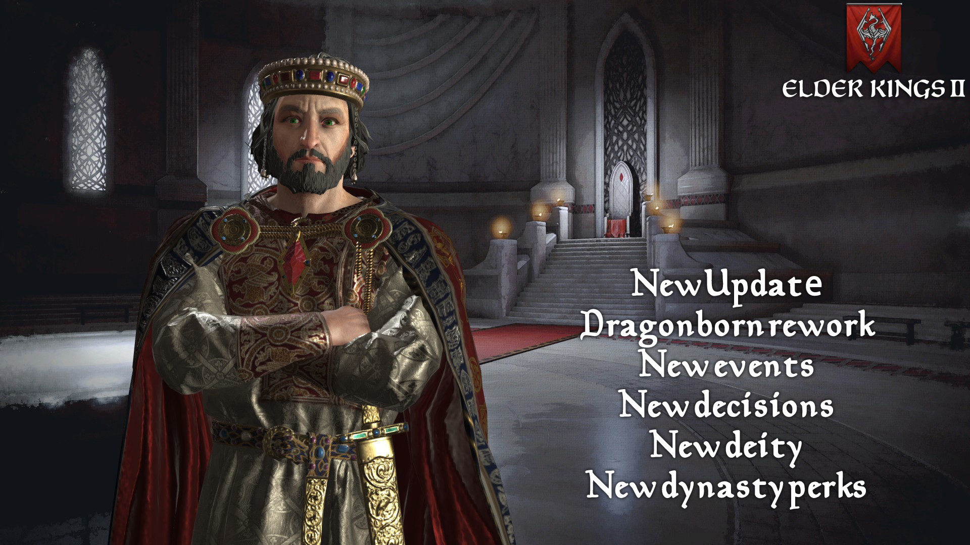 This mod is not compatible with ULTIMATE Elder Kings (UEK contains an outdated and very buggy version of this mod) Have you ever wanted to write your own Dragonborn Emperor story? The Dragonborn trait is now available in the Character Designer, allowing yo