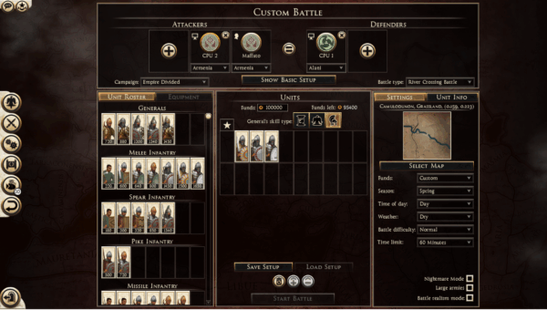 این حالت شش واحد من ایجاد شده برای ارمنستان و امپراتوری ساسانید را متحد می کند ، این واحدها فقط برای امپراتوری تقسیم می شوند. ارمنستان: -دوین شمشیرسترها (سطح 3 و 4 ساختمان پیاده نظام) -پیاده نظام (سطح 3 و 4 ساختمان پیاده نظام) -tigranes (سطح)…