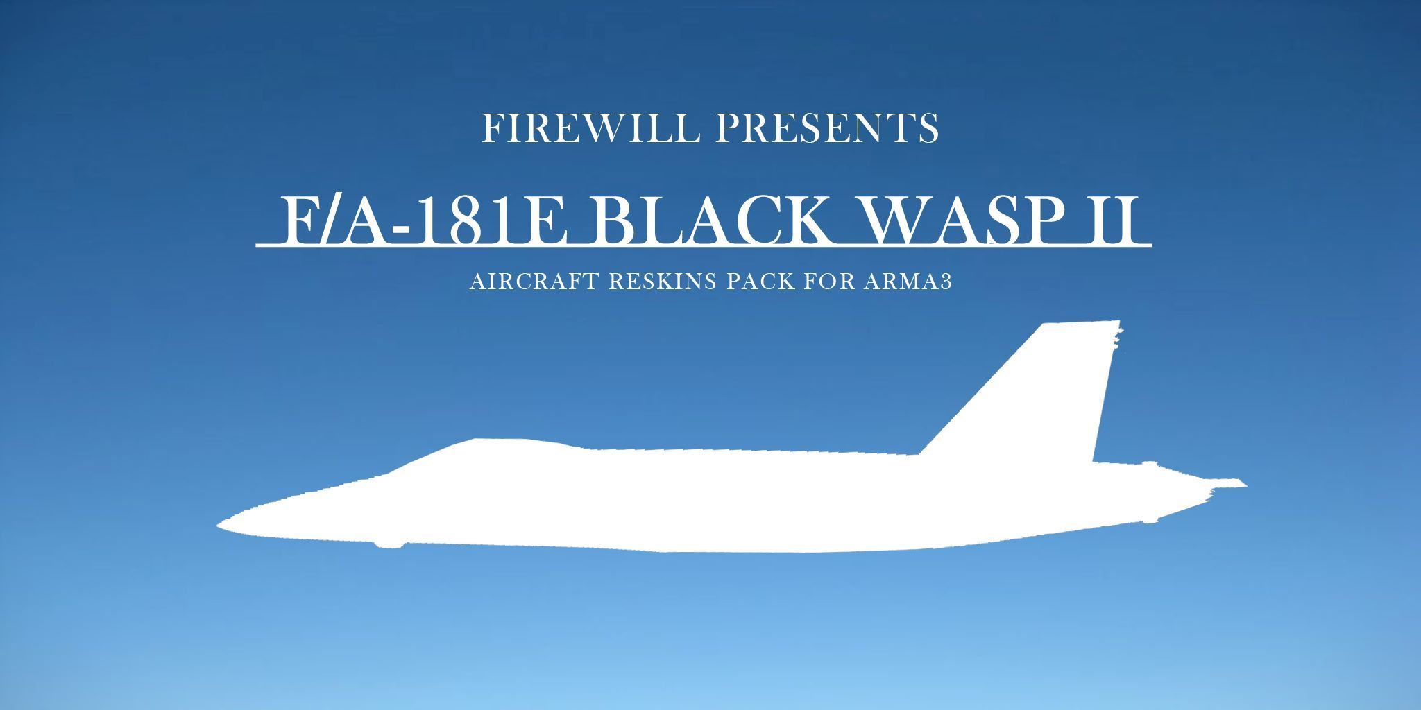 ADDON : F/A-181E Black Wasp II Version : 0.1 Release Date : 2018-05-20 ====================== CONTACT INFORMATION : ====================== firewill0@gmail.com ====================== REQUIRED ADDONS: ====================== ARMA3 FIR AirWeaponSystem US(Optio