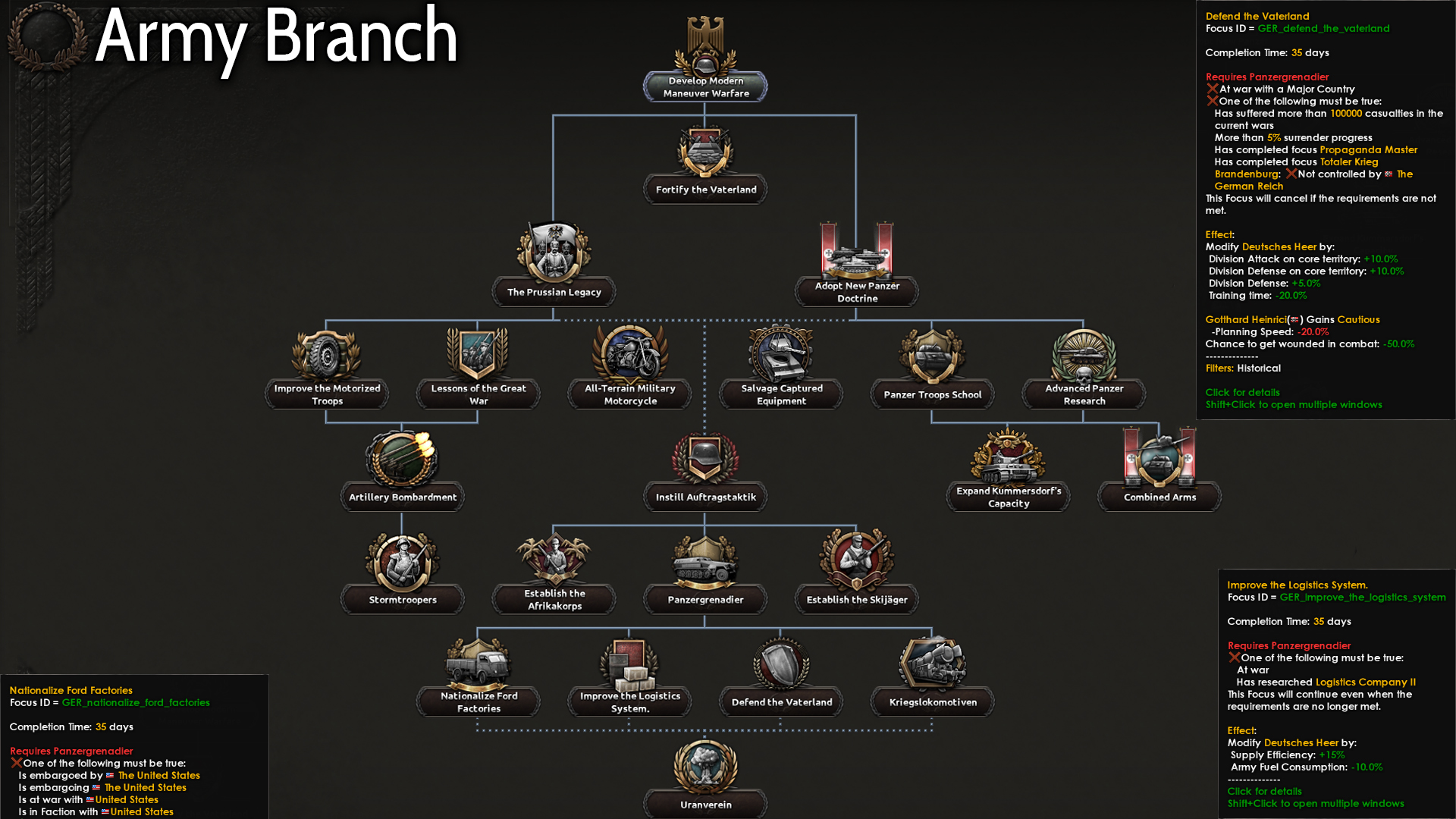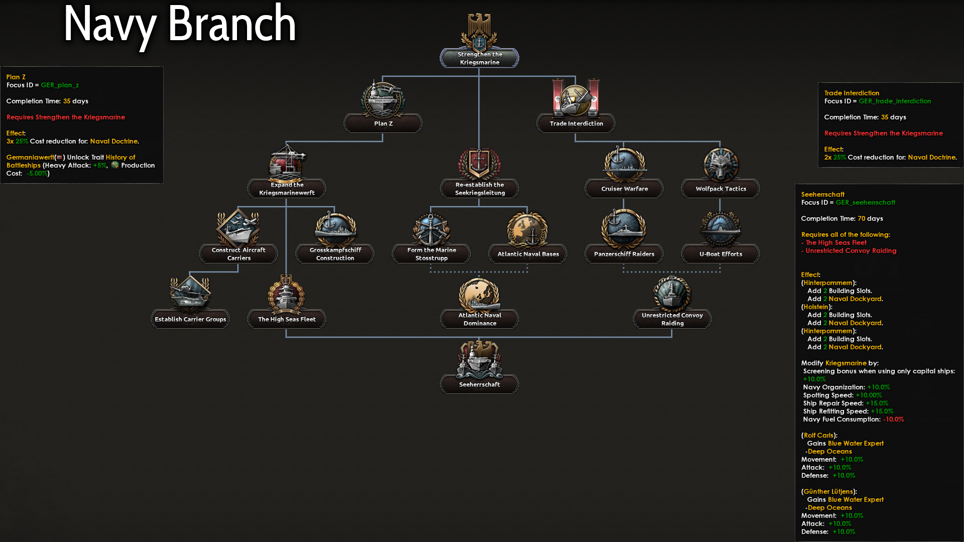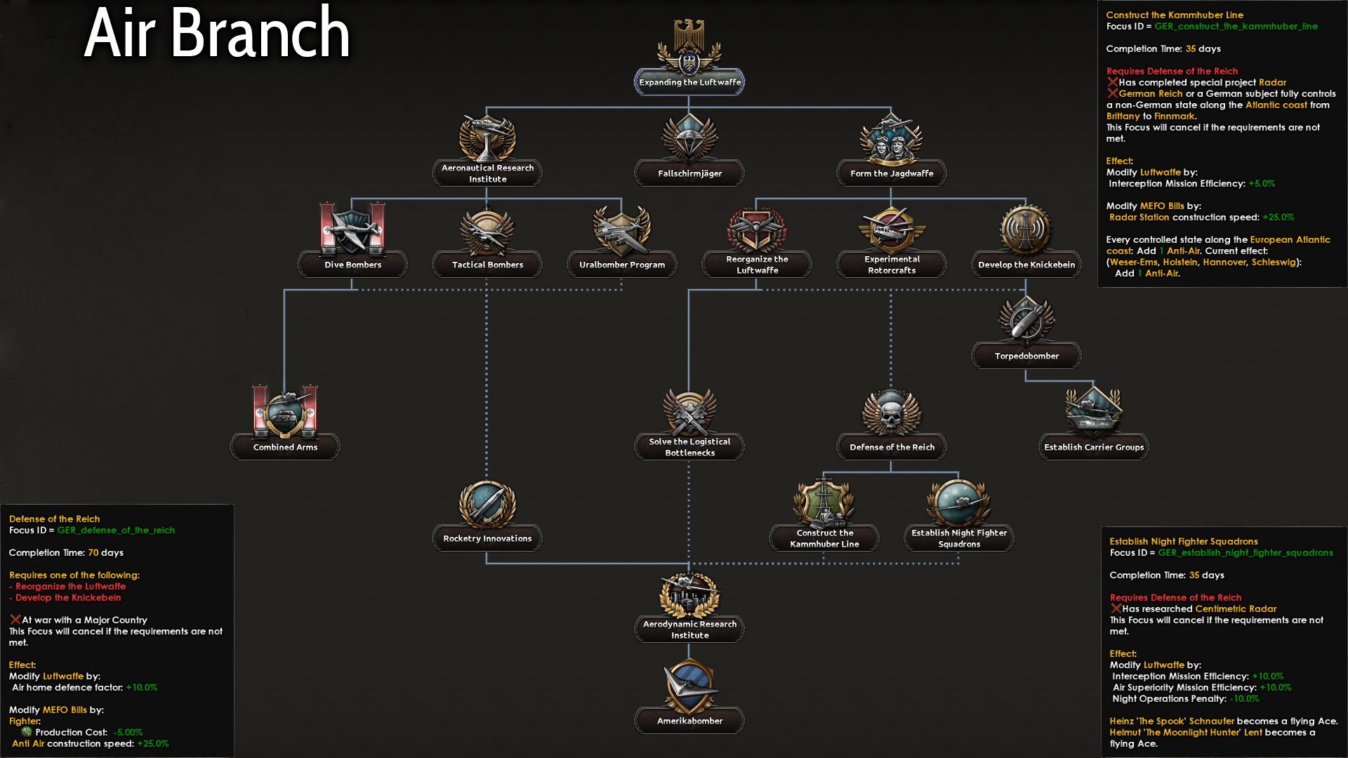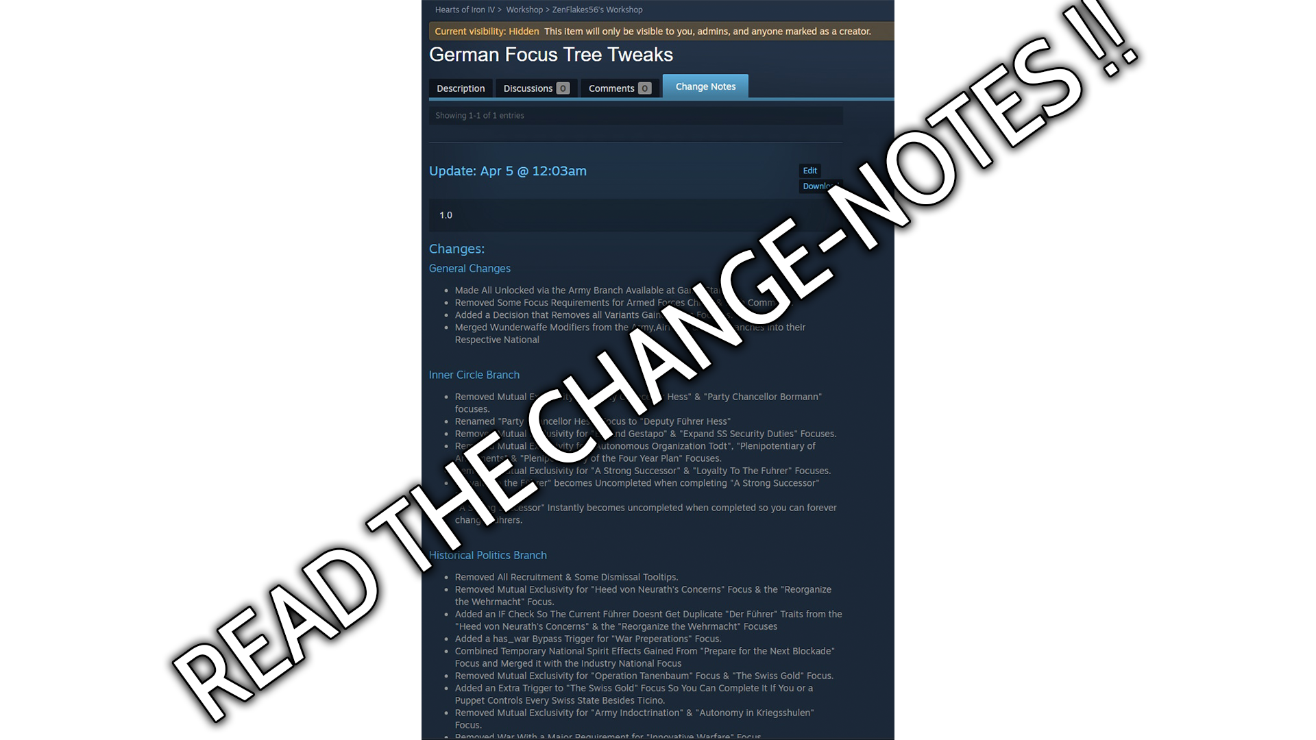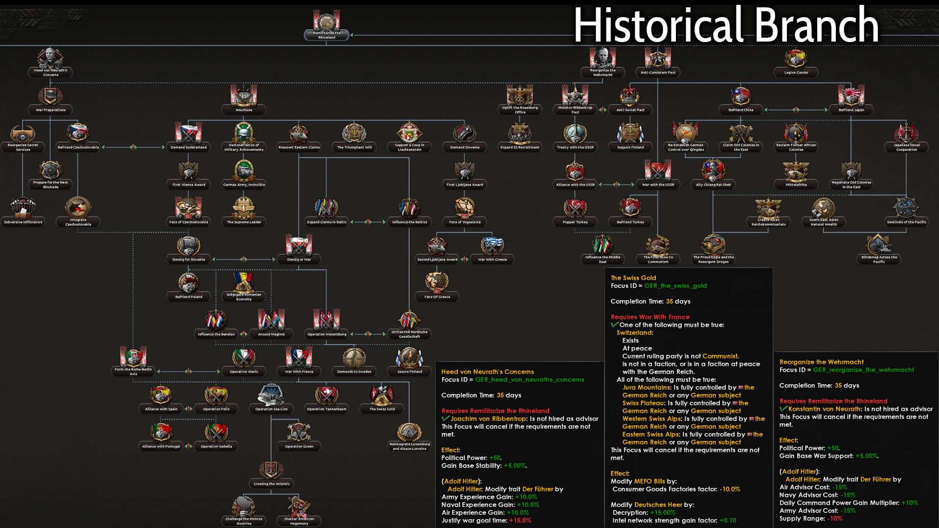 ** Please read the change notes to see every change made by this mod. ** ** Please note: if you are running this mod and none of the changes are being applied, you are using a mod that modifies the German focus tree file. Either disable it or put the mod n