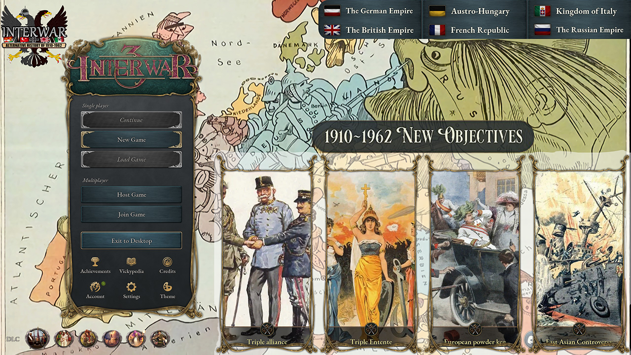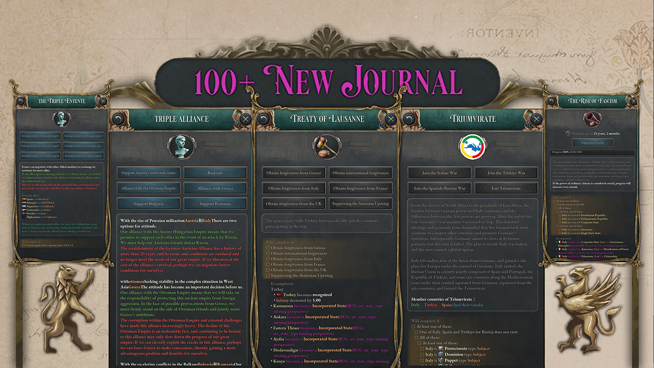 This is a large-scale immersive script mod simulating the 20th-century history. The peace in Europe was perilously fragile in 1910. Competing for hegemony in the Balkans, Italy was ready to confront the Ottoman Empire in a major conflict. Rebellion in Moro