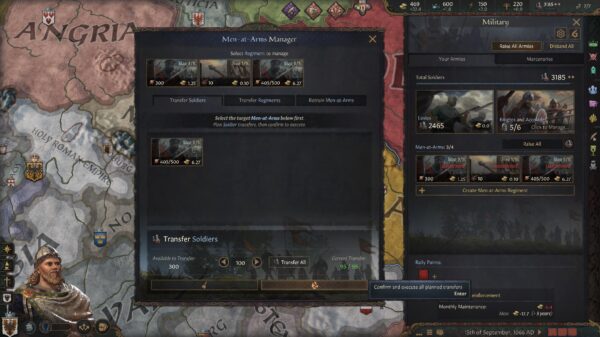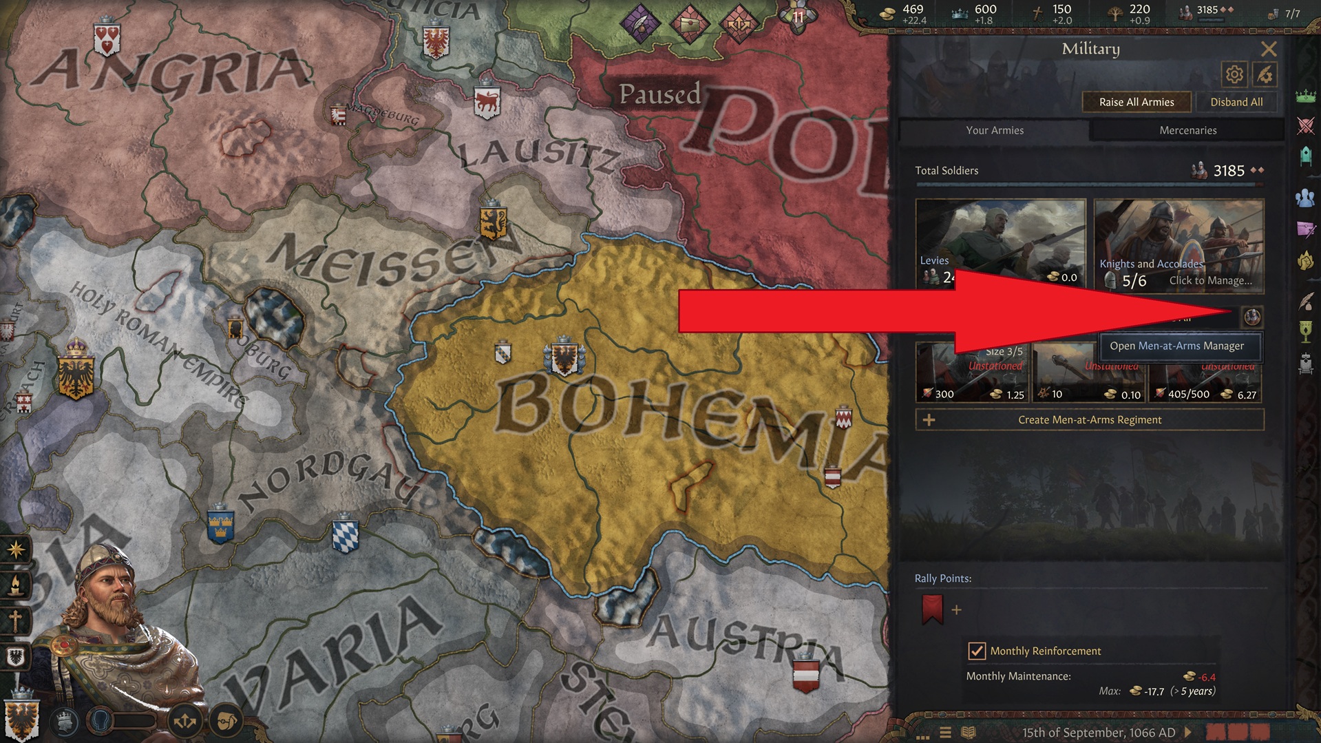 Men-At-Arms Manager Efficiently manage and reorganize your Men-At-Arms with an intuitive interface. Overview The Men-At-Arms Manager adds a powerful new interface to your military screen, allowing you to redistribute soldiers and regiments between your Men