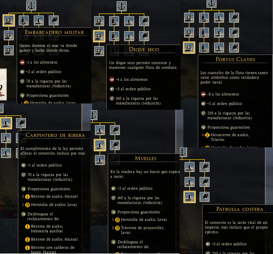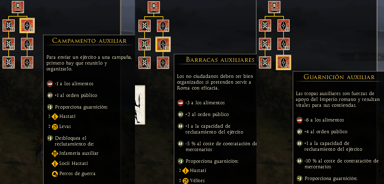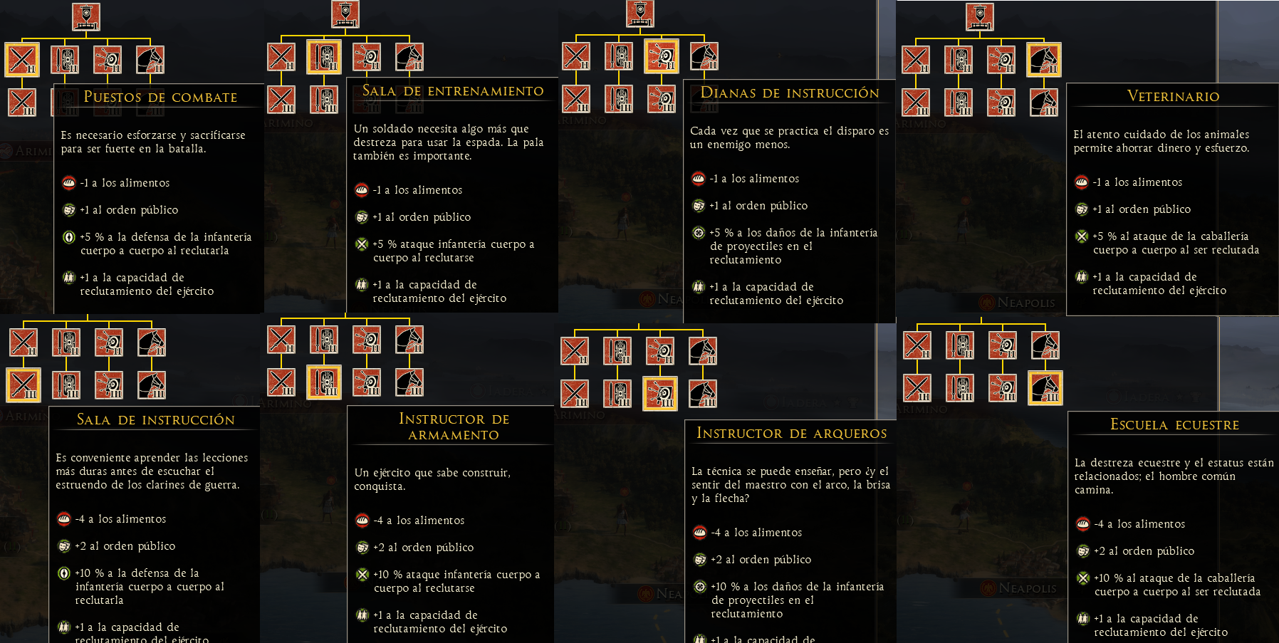 Este mod es compatible con partida guardada Da a los edificios militares (Barracas, Puertos y centro de instrucción) de las grandes culturas (Latina, Púnica, Helena, Oriental) bonificaciones al orden público. Las culturas Bárbaras y nómadas obtienen bonifi