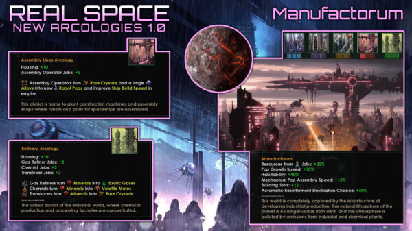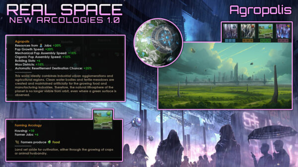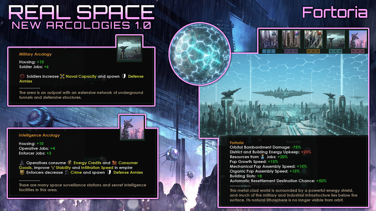 Real Space – New Arcologies v 1.1.1 This version is compatible with patch 4.1 Lyra. Although Real Space is in the name, this mod is completely independent and does no