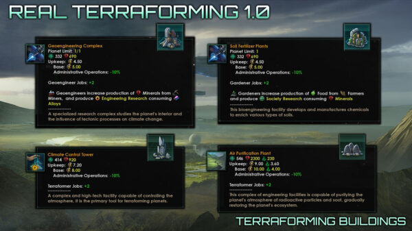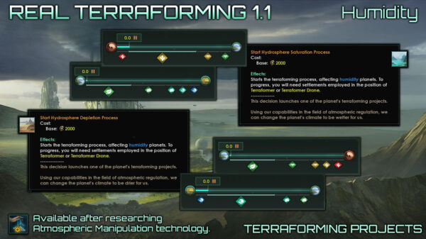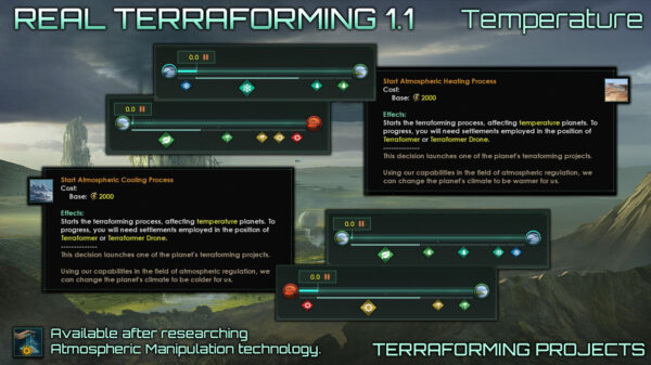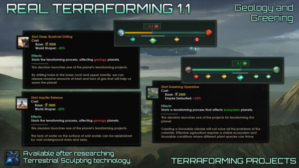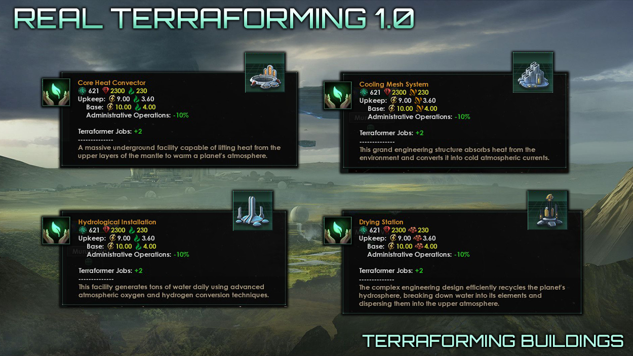 Real Terraforming v 1.2.1 This version is compatible with patch 4.1 Lyra. This mod is designed to completely change the existing mechanics of terraforming in the game