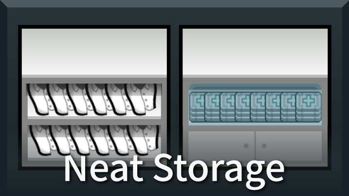 Neat Storage · Safe to add to a save game Add 24 types of furniture for neat storage I got tired of having 300 shelves with the same design. I wanted furniture that could neatly display items without hiding any, so I created this mod. These pieces of furni