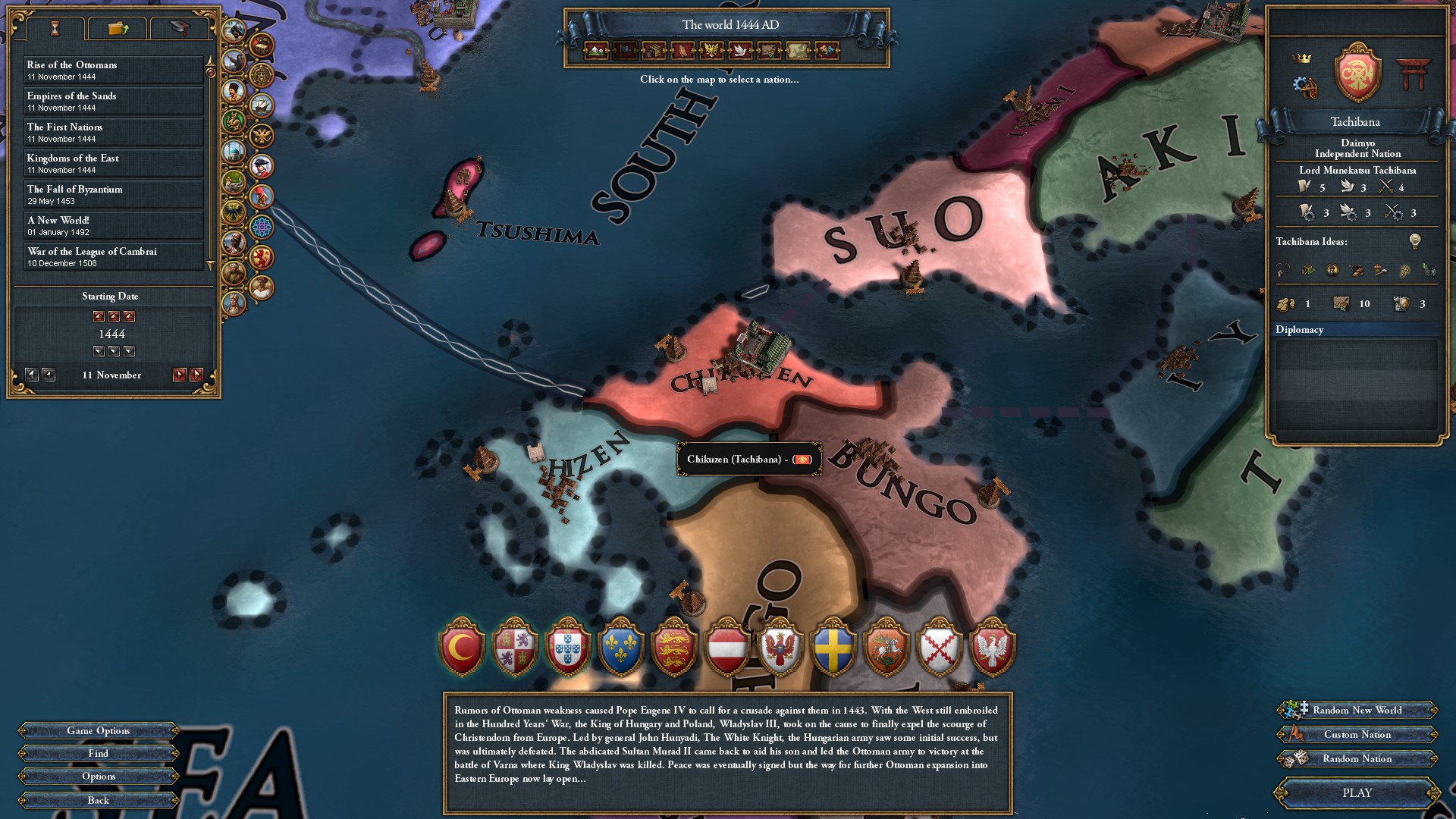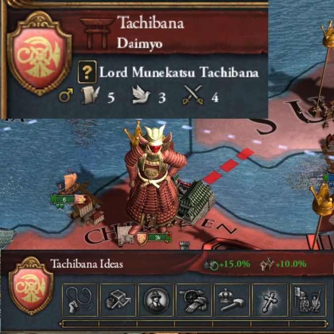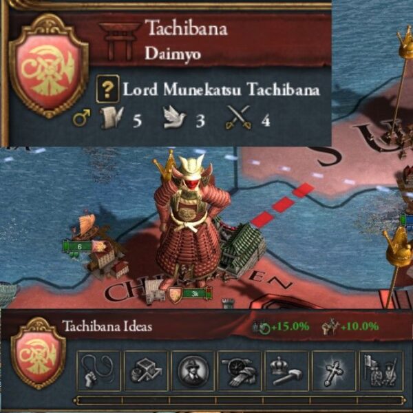 Adds my family clan, Tachibana, to our ancestral home of Tachibanayama in Chikuzen! Our clan of Tachibana originated with Ôtomo Sadatoshi, he was the lord of Tachibanayama Castle on the island of Kyūshū and was granted the name for his great prowess in bat