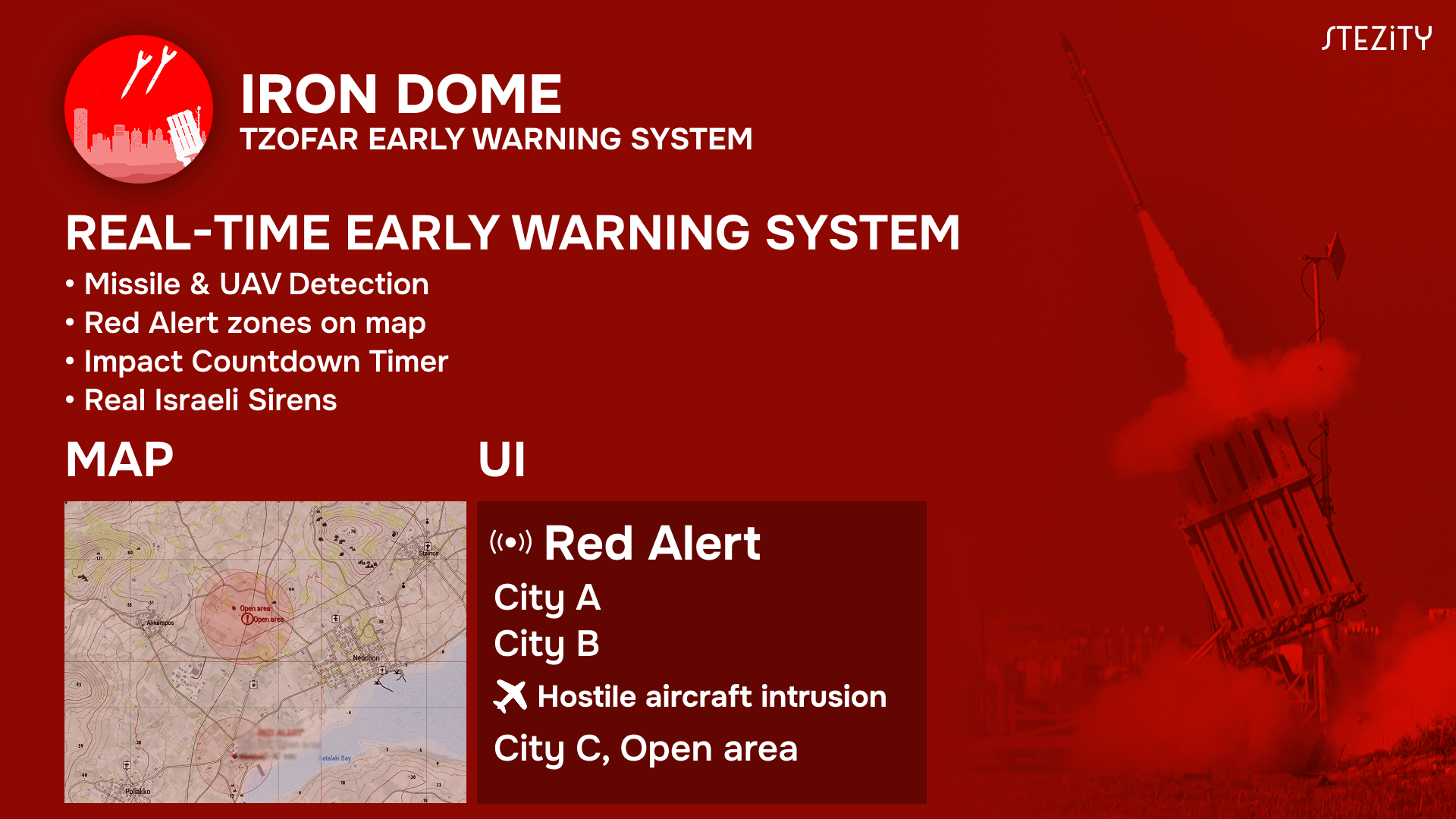 IRON DOME — TZOFAR EARLY WARNING SYSTEM This mod expands the Iron Dome system in ARMA 3 with a modern israeli early warning and civil alert network, inspired by real-world air defense concepts used in high-threat environment