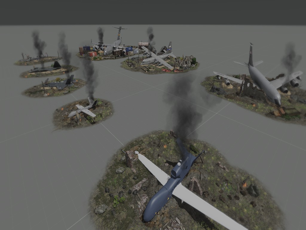 This comp is a crash pack of USAF Plane Crashes, using Cup core, USAF Airforce mods. This is a test using other types of mods, since no offence, the RHSUSAF Mod doesent pack too much in thier fixed wing aviation section. Make sure to place with vertical mo