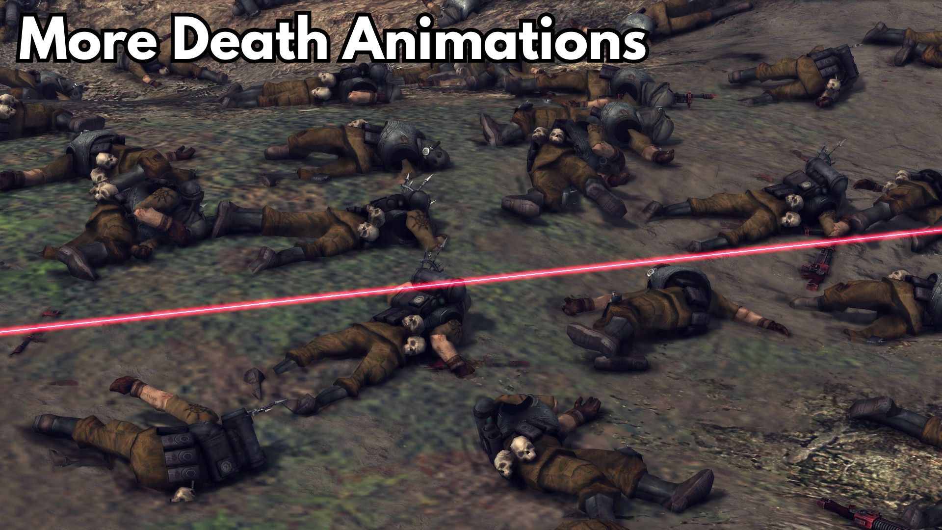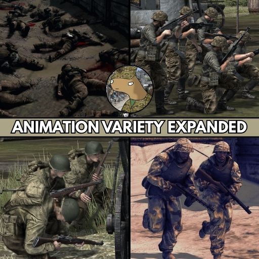 ALWAYS LOAD THIS MOD VERY LAST EXCEPT FOR PATCHES WAVE is a visual mod that expands the infantry animation variety by adding MORE death animations, more cover animations, reload animations, among others. This mod adds more to the pool of potential animatio